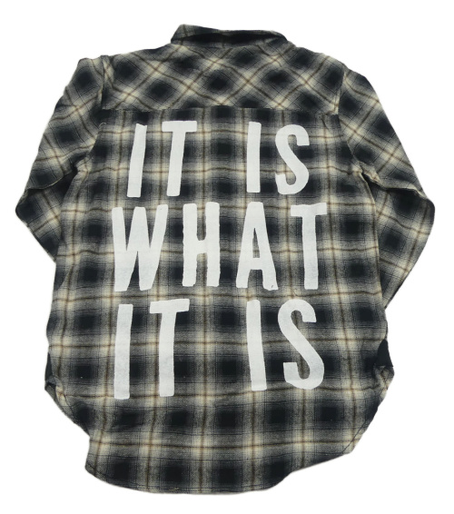 Béžovo-černá kostkovaná košile s nápisem na zádech Rebel