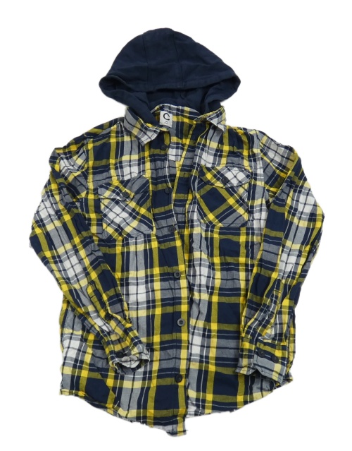 Tmavomodro-bílo-žlutá kostkovaná košile s teplákovou kapucí