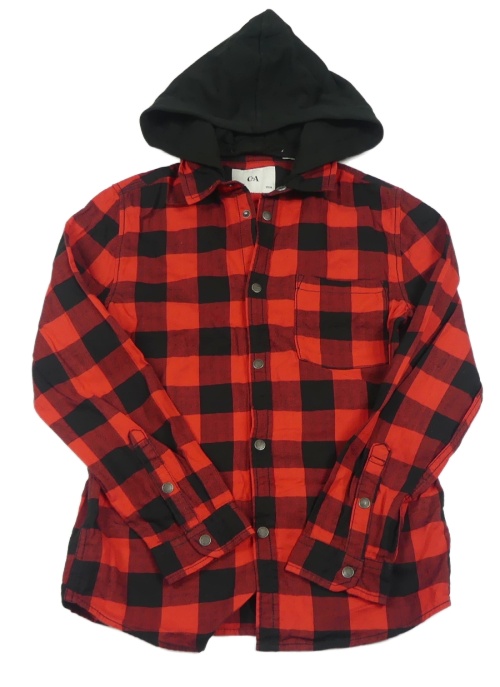 Červeno-černá kostkovaná vzorovaná košile s kapucí C&A