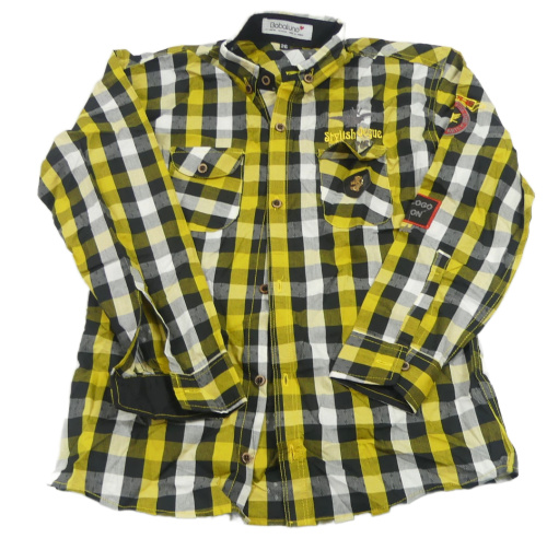 Černo-bílo-žlutá kostkovaná košile s nápisy a nášivkou