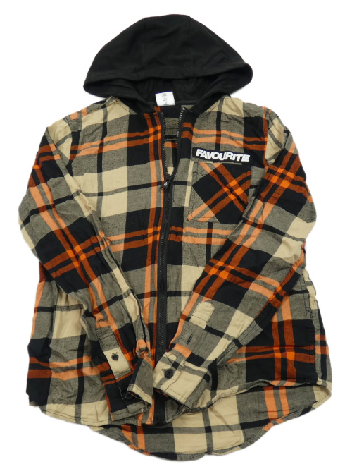 Béžovo-černo-oranžová kostkovaná košile s nápisem a kapucí Chapter young