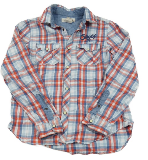 Modro-červená kostkovaná košile s nápisem H&M