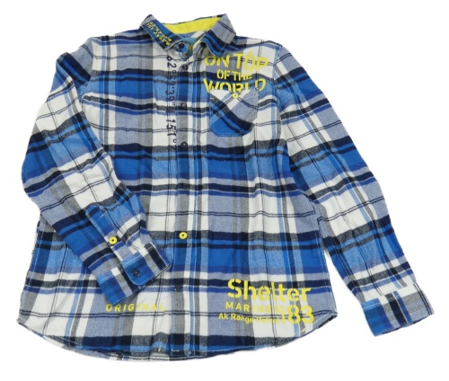 Modro-bílá kostkovaná flanelová košile s nápisy Original Marines