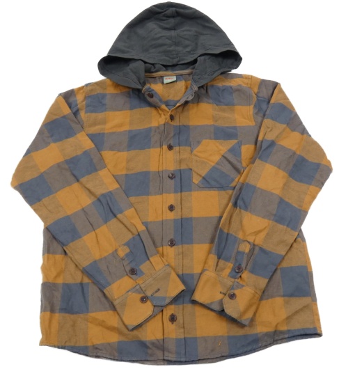 Antracitovo-okrová kostkovaná košile s kapucí