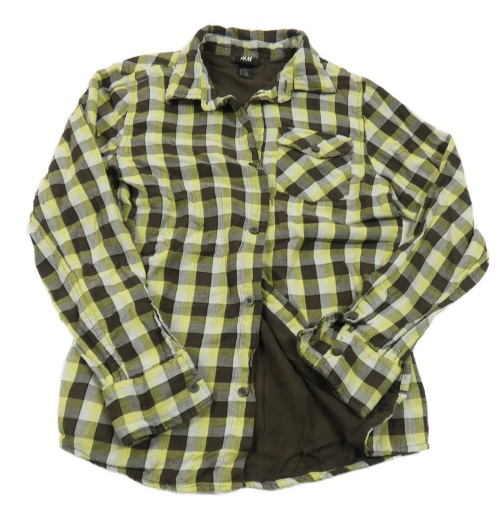 Hnědo-bílo-limetková kostkovaná podšitá košile H&M