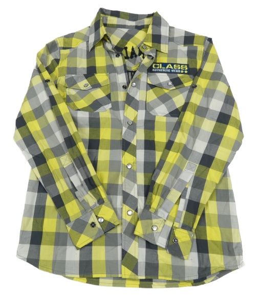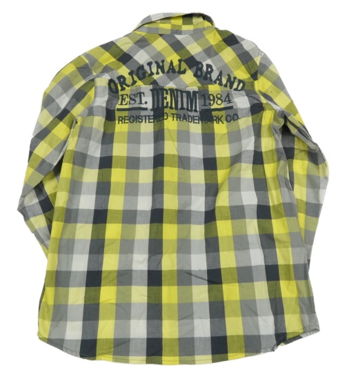 Žluto-šedá kostkovaná košile s nápisem Yigga