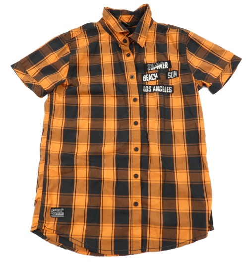 Černo-oranžová kostkovaná košile s nápisem CHapter Young