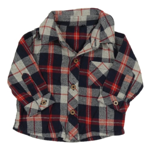 Tmavomodro-šedo-červená kostkovaná flanelová košile Tu