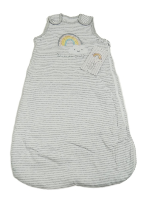 Nové - Bílo-šedý pruhovaný zateplený spací pytel s duhou