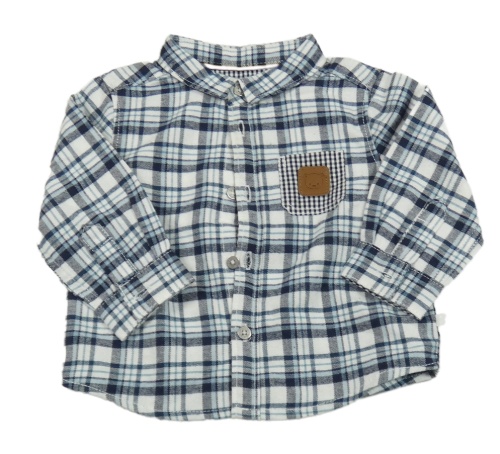 Bílo-tmavomodro-světlemodrá kostkovaná košile s medvídkem OBaïBi