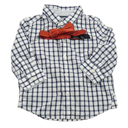 2set - Bílo-tmavomodrá kostkovaná košile + červený motýlek Next