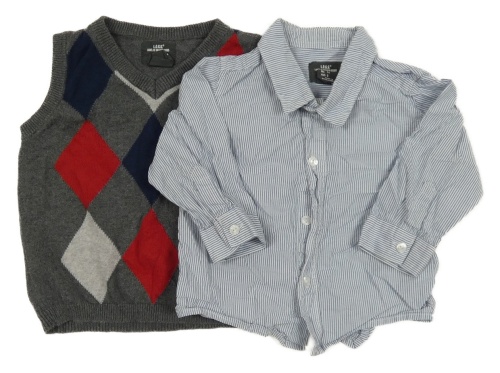 2 set - modro-bílá pruhovaná košile + šedo-tmaovmodro-červená károvaná vesta H&M