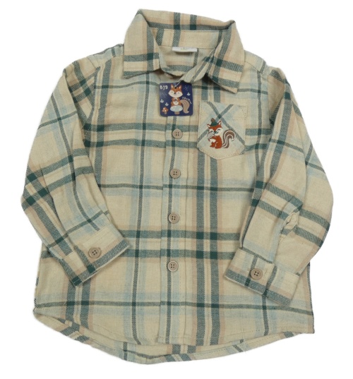 Nové - Béžovo-zelená kostkovaná košile s veverkou