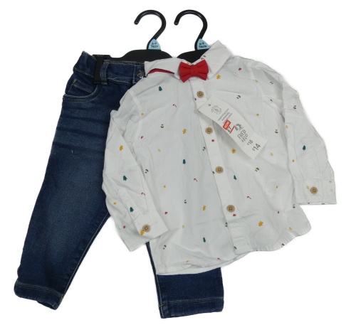 Nové - 2set - Tmavomodré rifle + bílá košile s obrázky F&F