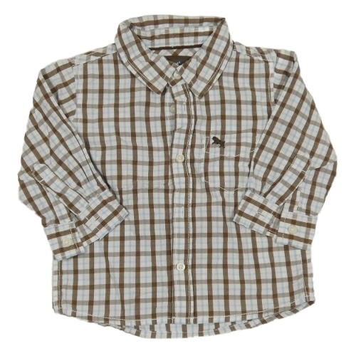 Bílo-světlemodro-hnědá kostkovaná košile s výšivkou H&M