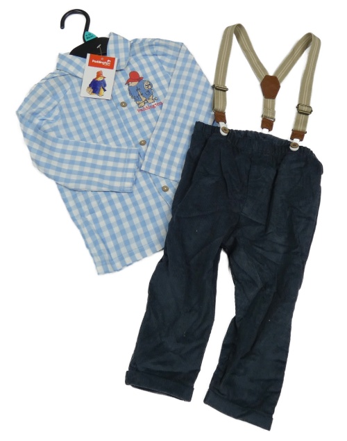 Nové - 2set - Světlemodro-bílá kostkovaná košile s Paddingtonem + Šedomodré laclové manšestráky