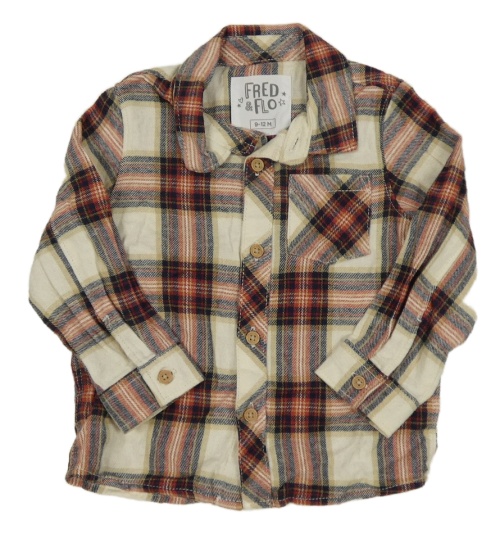 Smetanovo-béžovo-tmavomodro-červená kostkovaná košile F&F