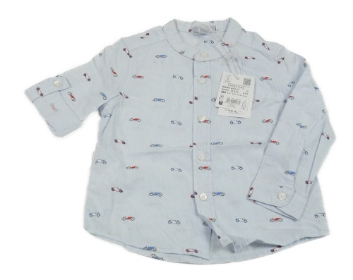 Nové - Světlemodrá proužkatá košile s auty