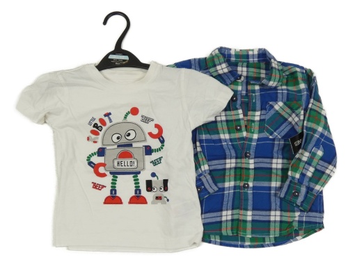 Nové - 2set - Barevná kostkovaná košile + bílé tričko s robotem Dunnes