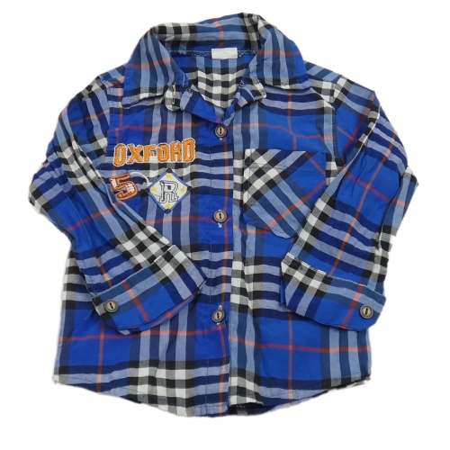 Safírovo-černo-bílá kostkovaná košile s nášivkami