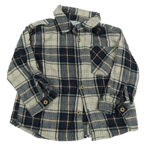 Tmavomodro-smetanová kostkovaná flanelová košile Zara
