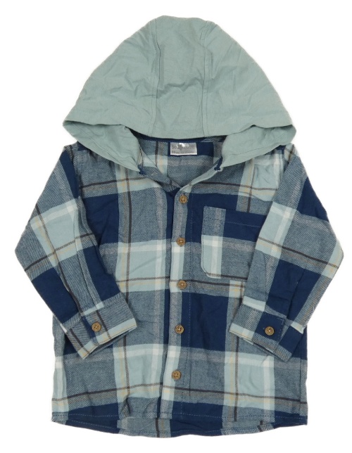 Tmavomodro-světlemodrá kostkovaná košile s kapucí