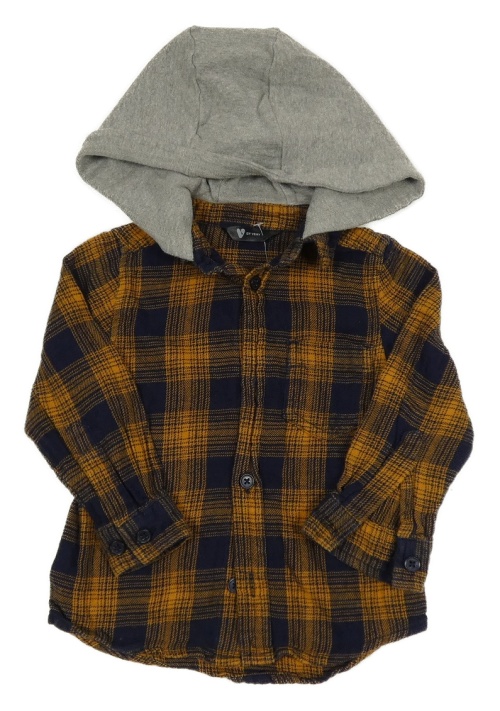 Tmavomodro-hořčicovo-šedá kostkovaná košile s kapucí V by Very
