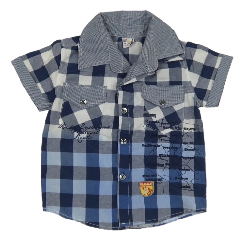 Tmavomodro-bílá kostkovaná košile s výšivkami