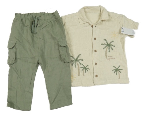 Nové - 2 set - smetanová košile s palmami + khaki lněné kalhoty George