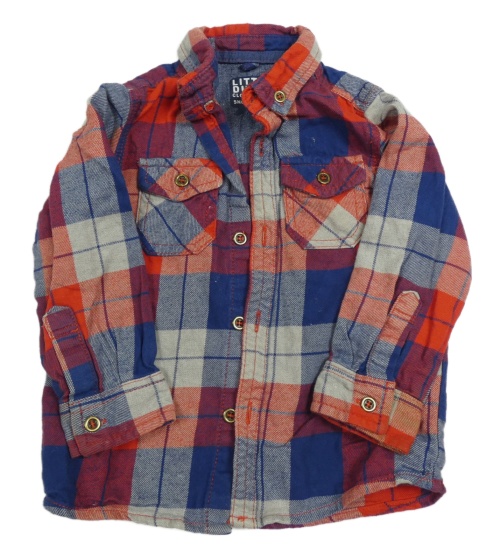 Tmavomodro-červeno-šedá kostkovaná košile Tu