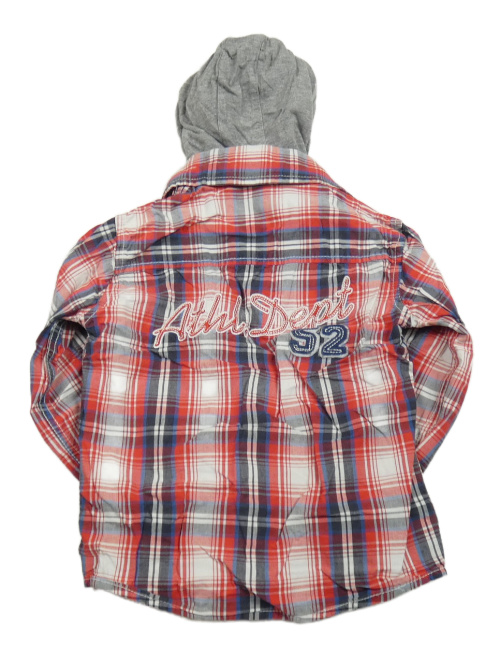 Bílo-červeno-tmavomodrá kostkovaná košile s číslem a kapucí C&A