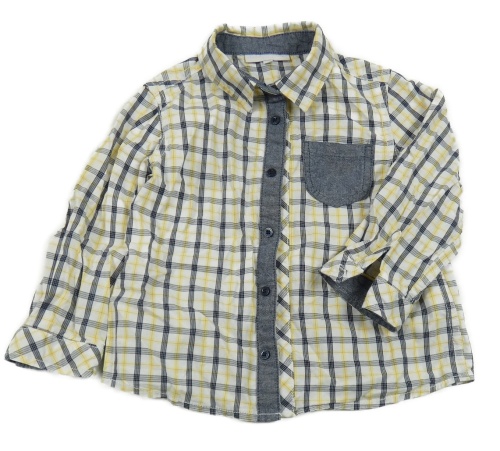 Bílo-žluto-tmavomodrá kostkovaná košile