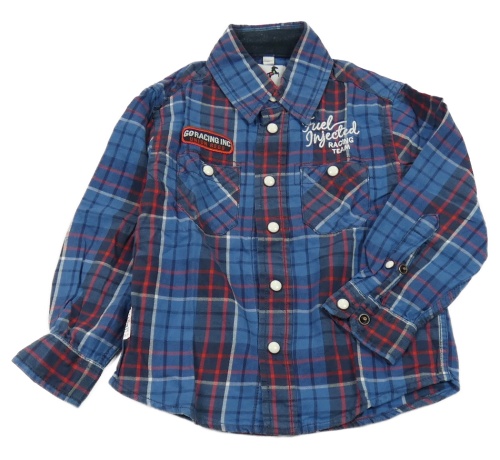 Tmavomodro-červená kostkovaná košile s nápisem C&A