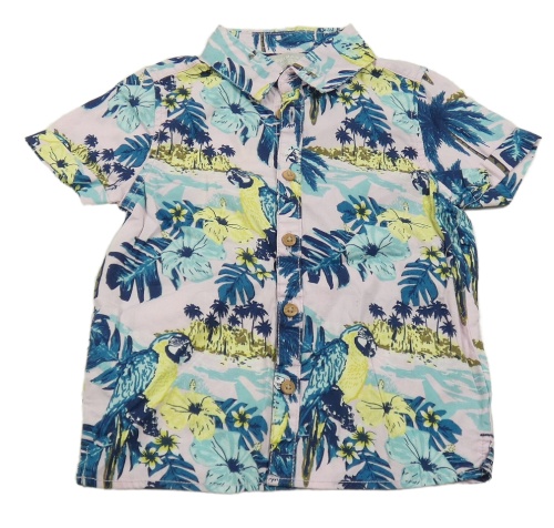 Růžovo-modro-žlutá květovaná košile s papoušky Primark