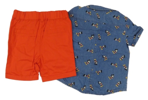 Nové - 2set - Modrá košile s Mickeym + červené plátěné kraťasy Primark