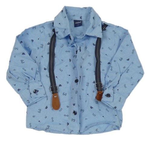 Modrá košile s brýlemi a kšandami