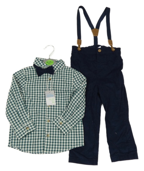 Nové - 3set - Tmavomodré manšestrové kalhoty + kostkovaná košile + motýlek Primark