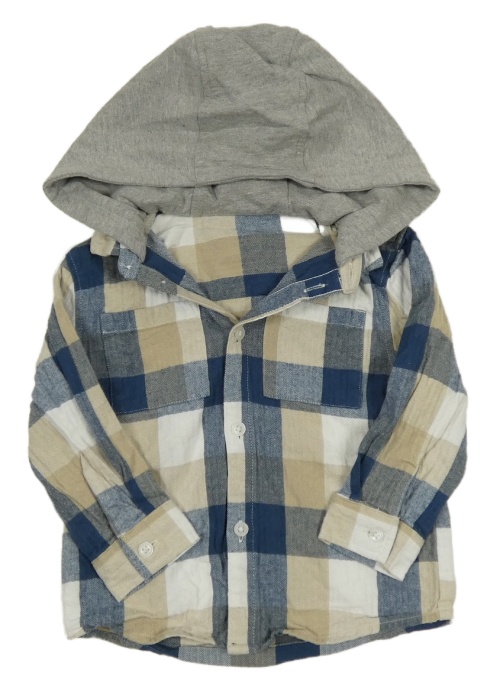 Tmavomodro-bílo-béžová kostkovaná košile s kapucí George