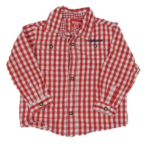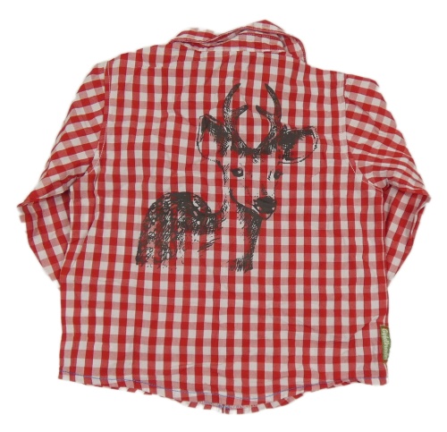 Červeno-bílá kostičkovaná košile s nápisem