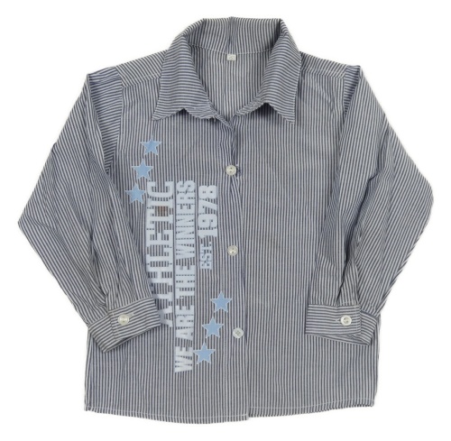 Tmavomodro-bílá pruhovaná košile s nápisem