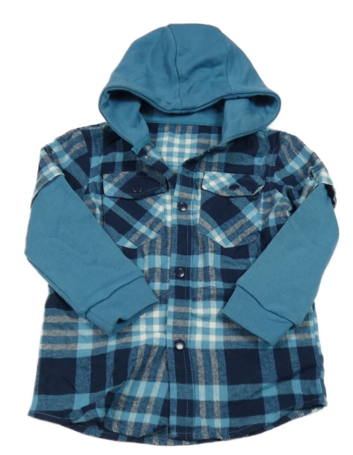 Modro-bílá kostkovaná košile s teplákovými rukávy a kapucí Dunnes Stores