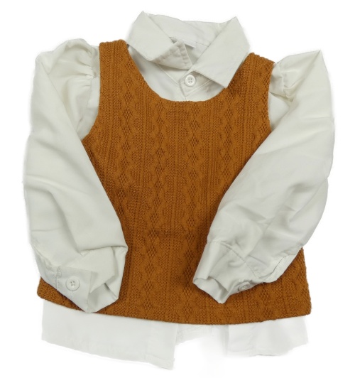 2set - Bílá halenka + Okrová vzorovaná úpletová vesta
