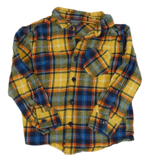 Hořčicovo-tmavomodro-oranžová kostkovaná flanelová košile Primark