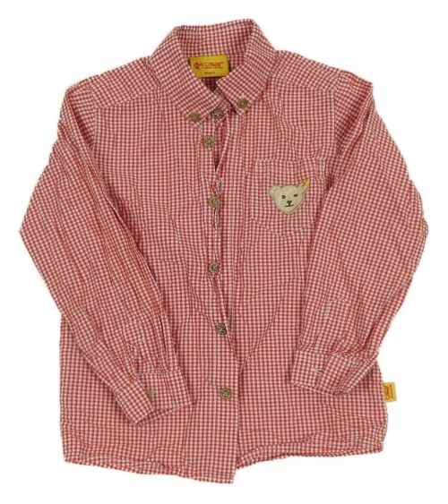 Červeno-bílá kostkovaná košile s medvídkem