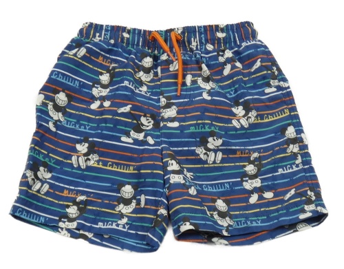 Tmavomodro-barevné pruhované plážové kraťasy s Mickeym Disney