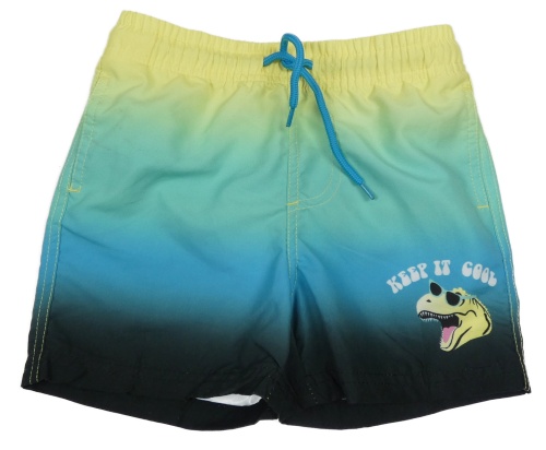Žluto-modro-černé plážové kraťasy s dinosaurem