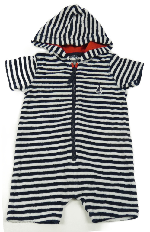 Tmavomodo-bílý pruhovaný froté kraťasový overal s plachetnicí a kapucí Next