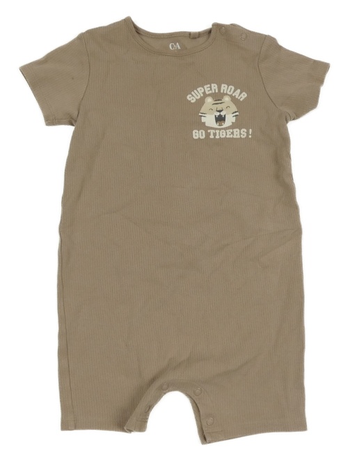 Hnědý žebrovaný bavlněný kraťasový overal s tygrem C&A