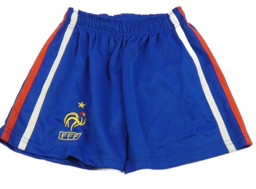 Modré sportovní kraťasy s pruhy a výšivkou