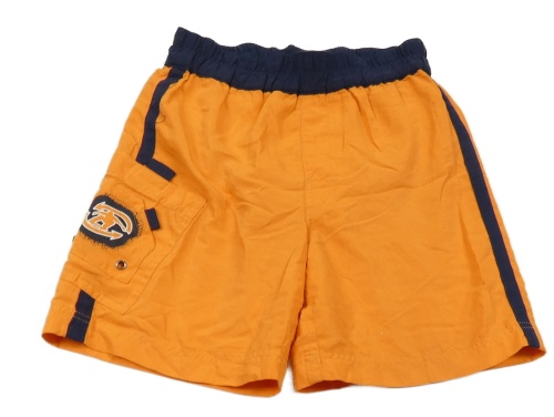 Oranžovo-tmavomodré sportovní kraťasy s nápisem